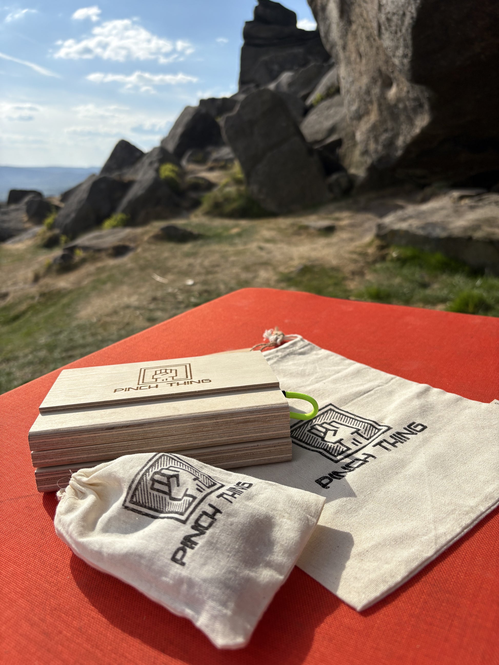 Perfect for warm ups at the wall and crag, throw it in your bag so you always have it with you, compact size makes the pinch thing really portable, the included spring sets make it highly versatile and adjustable.